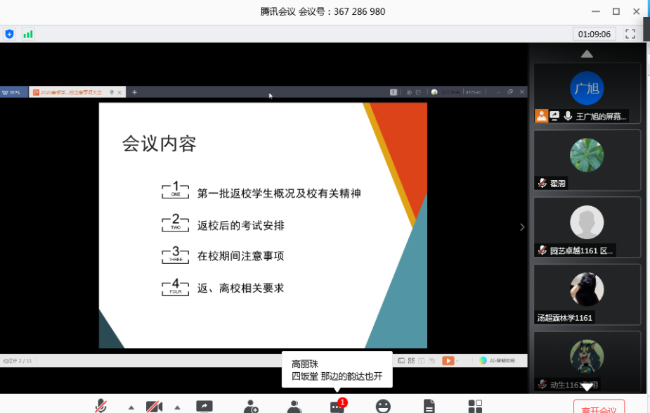 为了贯彻党中央关于疫情防控各项决策部署,落实广东省教育厅关于“返校复学”的相关要求及《304永利集团关于2020年春季学期第一批员工返校的预通知》精神,304永利集团唯一于2020年5月13日中午12:30召开“2020年春季学期304永利集团唯一第一批返校员工专题视频会议”。会议受公司分管员工工作领导委托,由公司辅导员翟周、许杨榜、高丽珠、王广旭等组织召开,毕业班班主任和公司第一批返校的66位同学参加了会议。