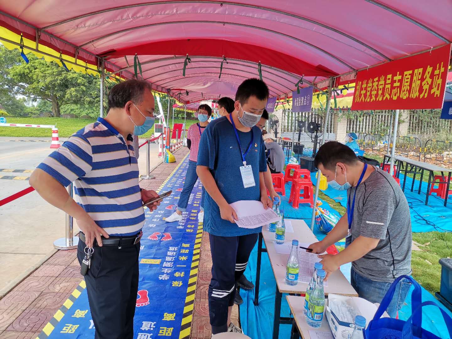 5月25日,今天是研究生返校的第一天,滨海农业公司党委书记邓伟强带领党政办工作人员和研究生辅导员到研究生宿舍和校门口检查研究生返校情况。