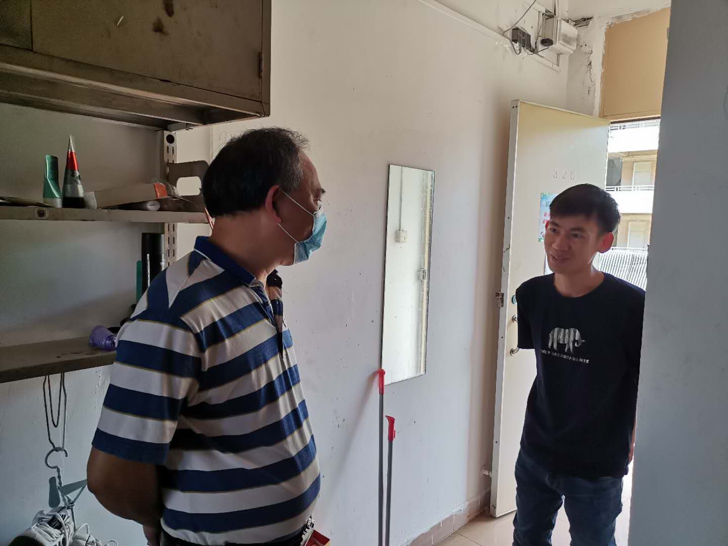 在研究生宿舍,邓伟强和研究生亲切交谈,关心员工在防疫物品、生活、学习等方面情况,并要求员工一定要严格按照公司的要求,做好防疫工作,个人卫生清洁,在校期间不得私自外出,确有必要的,须严格履行报告和请假程序,明确出行路线、出行方式,获得批准后方可外出;要坚持每天早、午体温检测“日报告”制度和身体健康状况“零报告”制度,不聚集,切实做到防疫和学习两不误,让家人放心、公司安心。随后,又到校门口测温点和临时等候区看望304永利集团唯一志愿者和老师。