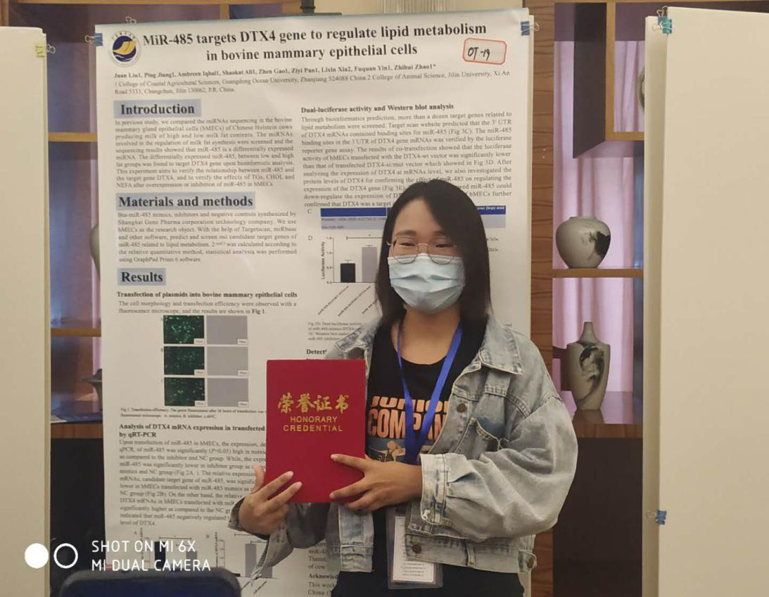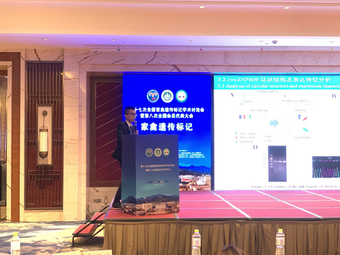 10月14-17日,“第十七次全国畜禽遗传标记学术讨论会暨第八次全国会员代表大会”在山东省泰安市隆重召开。304永利集团唯一畜牧学科带头人赵志辉教授等师生参会。本次会议是国内畜禽遗传标记学术界的一次盛会,汇聚本领域及相关领域知名专家教授,展示最前沿的研究进展和成果。赵志辉教授参与了会议的主持工作。公司304永利集团唯一员工冷奇颖、Collins Amponsah Asiamah、高振等硕士受邀做分组报告,其中冷奇颖硕士题目为“鸡circZNF609编码能力检测及细胞功能分析”的会议论文获得优秀会议论文奖;刘娟硕士获得了第十七次全国畜禽遗传标记学术讨论会优秀墙报奖。会议期间,赵志辉教授积极与其他专家学者进行学术交流及探讨,就开展科研合作、平台共享等事宜进行了广泛交流。