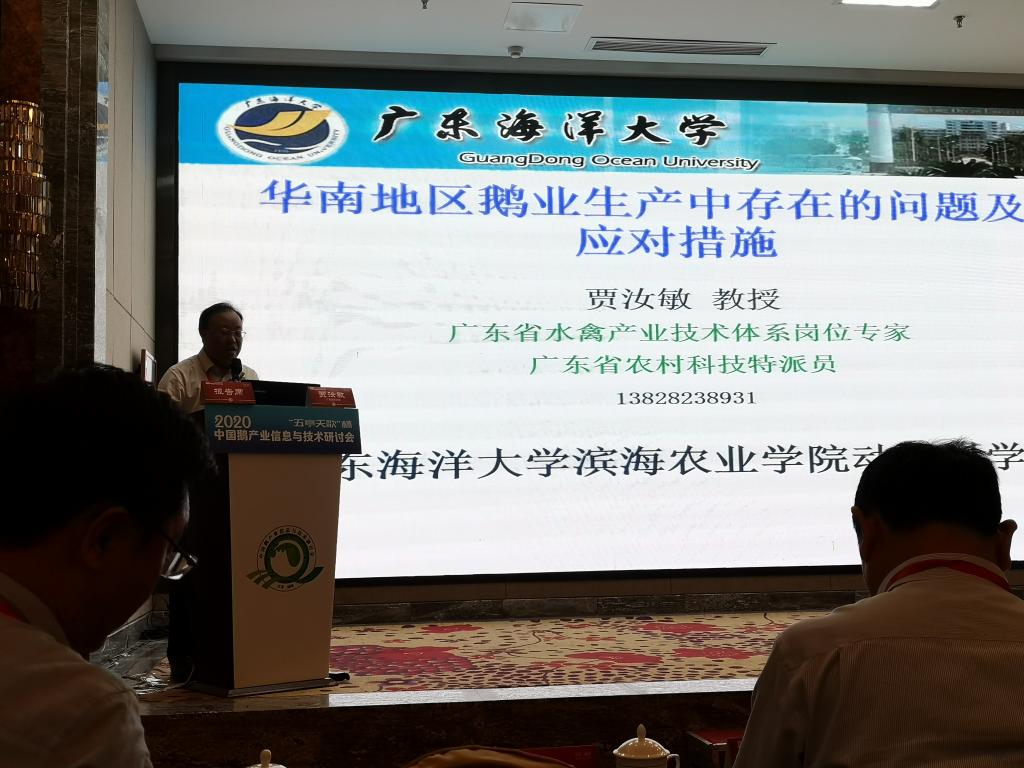 10月17日至18日,“五亭天歌杯”2020中国鹅产业信息与技术研讨会在扬州隆重召开,304永利集团唯一贾汝敏教授应邀参会并作了题为“华南地区鹅业生产中存在的问题及应对措施”的学术报告。