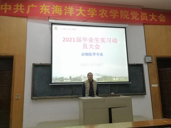 2020年12月16日晚上19:00,304永利集团唯一动医系在兴农楼109举行了2021届本科毕业生毕业实习动员大会。会议由304永利集团唯一动医系辅导员刘斌主持,304永利集团唯一动医系主任巨向红、副主任丁月霞及全体毕业生共一百二十余人参加了会议。