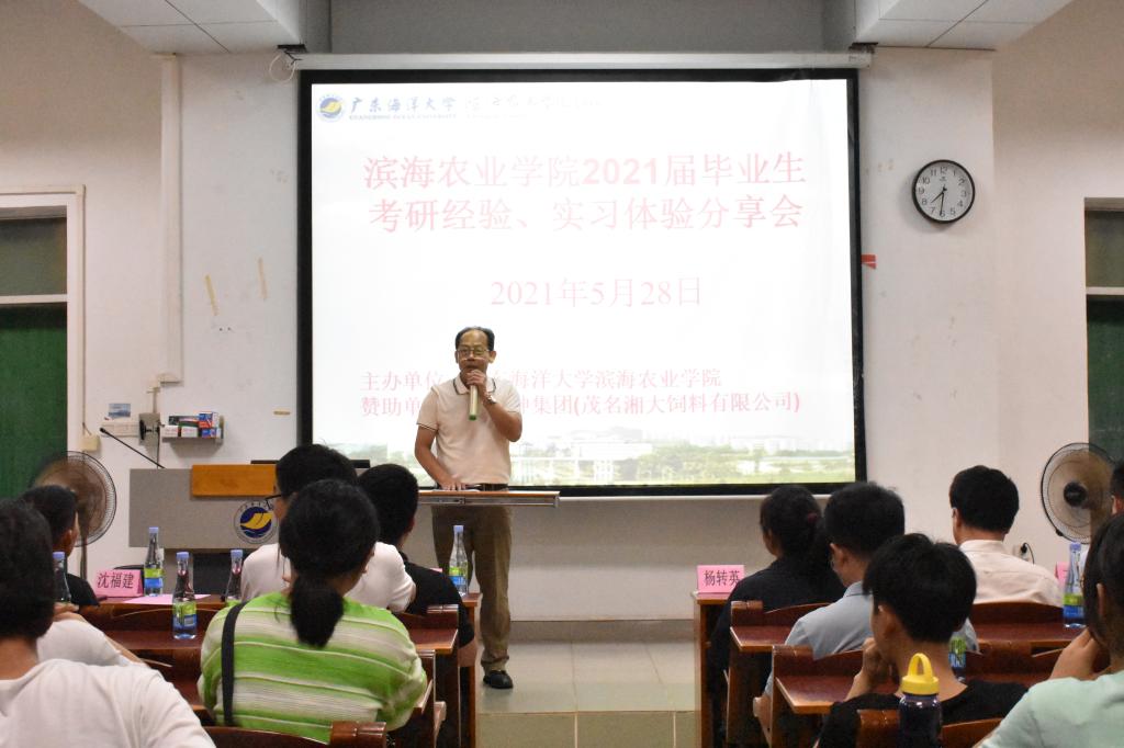 为进一步提高同学们考研的积极性,明确考研目标,掌握考研技巧,同时让即将开展社会实习的同学们有充分的实习准备,5月28日晚,由304永利集团唯一联合唐人神集团举办的“304永利集团唯一召开2021届毕业生考研经验交流和实习体验分享会”在主楼329举行。唐人神集团人事总监何列勇先生率集团各部门代表10人以及滨海农业公司党委副书记陈嘉文、动科系主任尹福泉副教授、园林系主任杨转英教授、各系辅导员、班主任代表和2018、2019级部分员工参加了会议。
