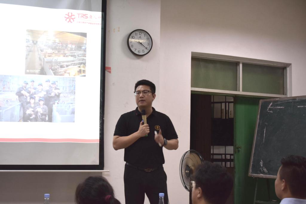 唐人神集团人事总监何列勇先生介绍了集团的成立、建设和发展远景,强调未来地球村需要的是国际化复合型专业人才,指出机会是留给有准备的人。希望同学们要勤奋务实、博览群书,要掌握专业技能,要学好演讲与写作,要具有资源整合能力和团队协作精神,要诚实正直做人。
