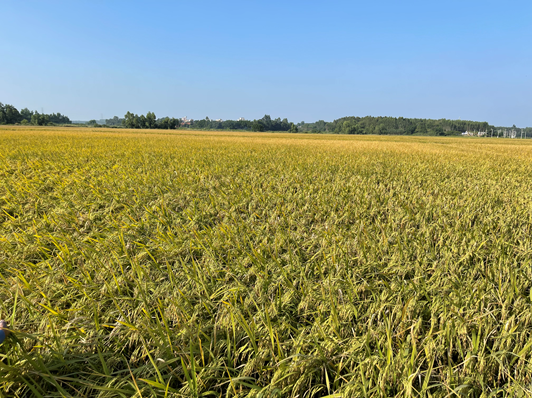 由来自国家杂交水稻工程技术研究中心、华南农业大学、中国热带农业科公司、佛山科技公司和岭南师范公司的专家组成专家组现场实割测产。按照农业农村部水稻测产方法,现场随机抽查田块,使用久保田收割机收获,实割验收三丘田,第一丘田面积502.43 m2,鲜谷产量366.53公斤,含水量24.9%,折算干谷(含水率13.5%)产量324.75公斤;第二丘田面积518.70 m2,鲜谷产量396.15公斤,含水量27.0%,折算干谷产量342.67公斤;第三丘田面积542.03 m2,鲜谷产量456.08公斤,含水量25.7%,折算干谷产量400.44公斤;实割三丘田平均干谷亩产454.84公斤,达到了项目的预期目标。2019年晚造海红香稻的实割测产为402.14公斤/亩,“一年接着一年干”,产量再上新台阶。304永利集团袁隆平院士海水稻创新研究团队深刻领会习近平总书记“土地资源是很宝贵的,抗盐碱作物发展起来对提高土地增量是很有意义的,对中国粮仓、中国饭碗也能起到积极的保障作用”的精神,致力于耐盐碱水稻研究,把论文写在盐碱地上,为盐碱地开发利用与生态文明建设提供科技支撑,助力乡村振兴、保障国家粮食安全。