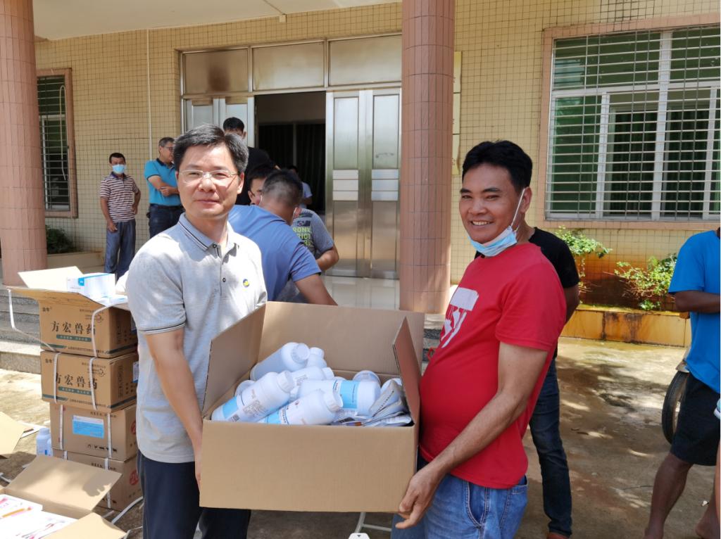 农村科技特派员团队给养殖户发放兽药