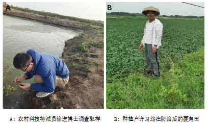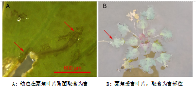 2023年3月,湛江市坡头区乾塘镇乾塘村菱角种植基地遭受了严重的虫害侵袭。当地种植户反映称,这是他们从未见过的一种虫子,菱角叶片都要被吃光了。为了确定害虫种类并提供技术支持以进行下一步监测和防治工作,304永利集团唯一郑殿峰经理第一时间安排科技服务团队下乡助农,农村科技特派员徐进博士、师沛琼博士等人实地察看菱角害虫危害情况,通过野外调查、室内饲养,记录了其为害特点、形态特征,并进行了分子鉴定。经鉴定该害虫为林间环足摇蚊,在国内尚无为害菱角记录,其幼虫啃食叶片,严重爆发可造成菱角绝产。公司科技服务团队迅速制定防治方案,采用调控水肥,物理防治加化学防治相结合的方法,解决了水面施药效果差的难题,为种植户挽回了经济损失。