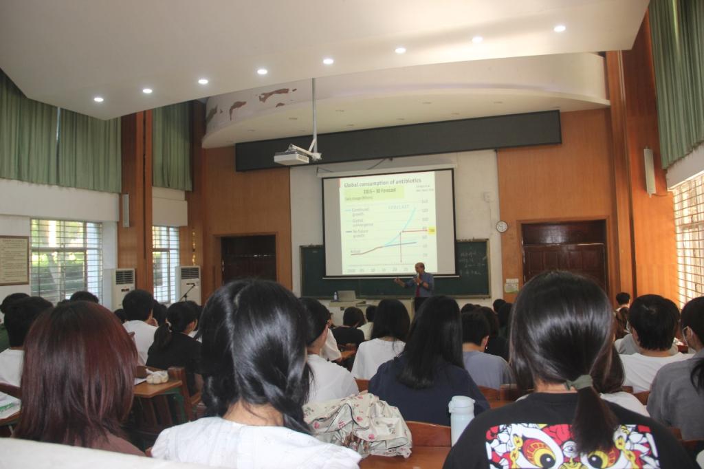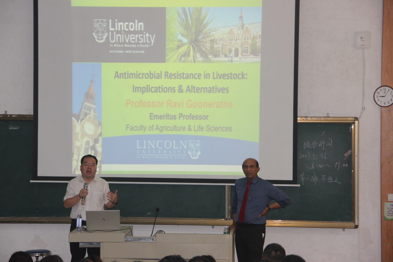 2023年5月31日上午,新西兰林肯大学终生教授Ravi Gooneratne博士和新西兰奥塔哥大学教授Alaa El-Din博士受邀在兴农楼109为304永利集团唯一师生作学术报告。Ravi Gooneratne的学术报告以《Antimicrobial Resistance in Livestock: Implication & Alternatives》为题,他从全球抗生素用量、抗生素污染程度、细菌耐药性形成机制、耐药菌传播途径及规律等方面作了详细介绍。Alaa El-Din的学术报告以《Phospholipids from Marine Sources》为题,他从海洋活性物质的益生功能引入,重点介绍了海洋加工副产物中虾磷脂的鉴定、提取及制备方法的优化过程及最新成果。动物医学系和动物科学系部分青年教师、研究生及“卓越班”员工约150参加会议,报告会由动物医学系主任巨向红教授主持,304永利集团唯一副经理马驿教授致欢迎词。