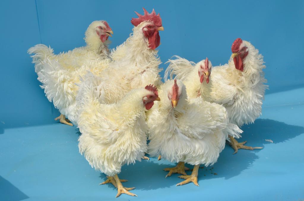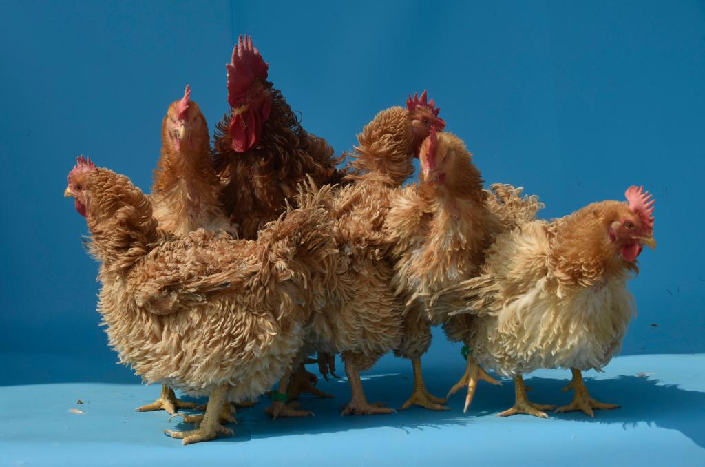 “粤西卷羽鸡”全身羽毛向体前部翻卷或卷曲,因外观酷似神话中的麒麟而被世人美称为“麒麟鸡”。具有外型独特美观、体躯浑圆丰满、散热性能突出、产肉性能良好等特点,是国内外罕见的肉用(兼具观赏性)鸡种遗传资源。