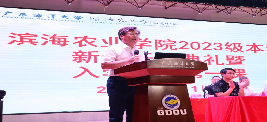 教师代表——国家耐盐碱水稻技术创新中心华南中心副主任江行玉教授从“感恩宽容之心、爱农知农的责任和担当、集体荣誉和家国情怀”三个方面的感想与新生们共勉。并希望同学们发挥才智、多学本领,为未来创造无愧于时代、无愧于人生的辉煌业绩积累用之不尽的资本。