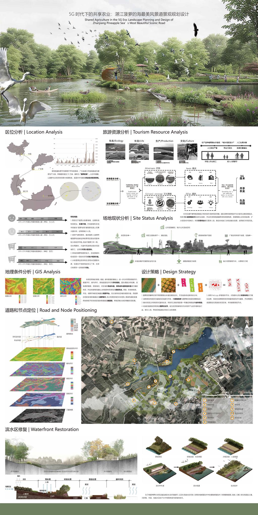 高校组一等奖作品:《“5G 时代下的共享农业:湛江菠萝的海最美风景道景观规划设计》