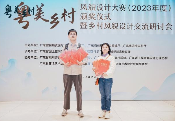 2024年3月22日,公司教师代表黄艳娜和梁子鑫老师参加“粤美乡村”风貌设计大赛(2023年度)颁奖仪式暨乡村风貌设计交流研讨会。本次会议由广东省自然资源厅、广东省教育厅、广东省住房和城乡建设厅、广东省农业农村厅主办,广东省国土空间规划协会、广东省“双百行动乡村建设规划高校联盟”承办。