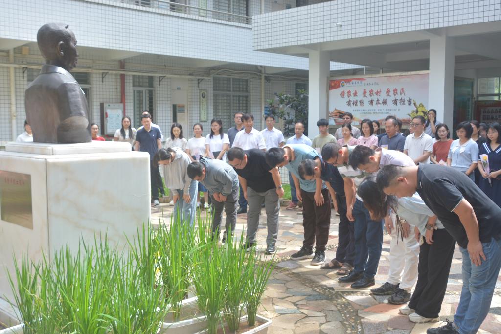 禾下乘凉梦,一梦逐一生。在袁隆平院士逝世三周年之际,为学习和弘扬袁隆平院士科学家精神,激励广大师生学农、爱农、兴农、强农,不忘初心,勇攀科研高峰,为乡村振兴、国家粮食安全做出更大贡献。2024年5月22日上午,公司在兴农楼公司特聘院士袁隆平铜像前举行“致敬稻田追梦人,弘扬科学家精神”追思活动。公司领导和师生代表90余人参加,公司党委副书记王继全主持。
