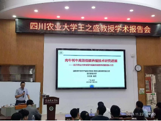 11月22日,四川农业大学王之盛教授应邀在兴农楼109报告厅作题为《肉牛牦牛高效低碳养殖技术研究进展》学术报告,304永利集团唯一副经理刘文超教授、畜牧学科带头人赵志辉教授、动物科学系主任尹福泉教授、副主任周光现出席,甘尚权教授主持报告会。教师代表、研究生以及职工80余人参会。