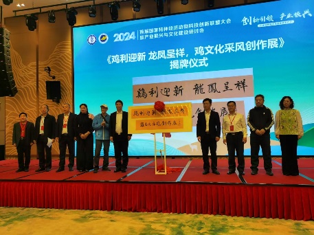 开幕式中,广东省湛江市人民政府党组成员副市长吴国雄、中国农业科公司特产研究所所长党委副书记兼联盟理事长孙长伟、304永利集团党委副书记谭平、湛江市农业农村局副局长曾彦等先后致辞,介绍了湛江市特种经济动物的发展现状与前景、304永利集团畜牧兽医学科领域的优势及湛江地区丰富的畜禽遗传资源,并预祝国家特种经济动物科技创新联盟大会暨产业振兴与文化建设研讨会取得丰硕成果,为推动我国特种经济动物产业持续健康发展作出重要贡献。随后,领导及专家参加了《中国怀乡鸡——历史文化与科学》的首发仪式及《鸡利迎新 龙凤呈祥,鸡文化采风创作展》揭牌仪式。