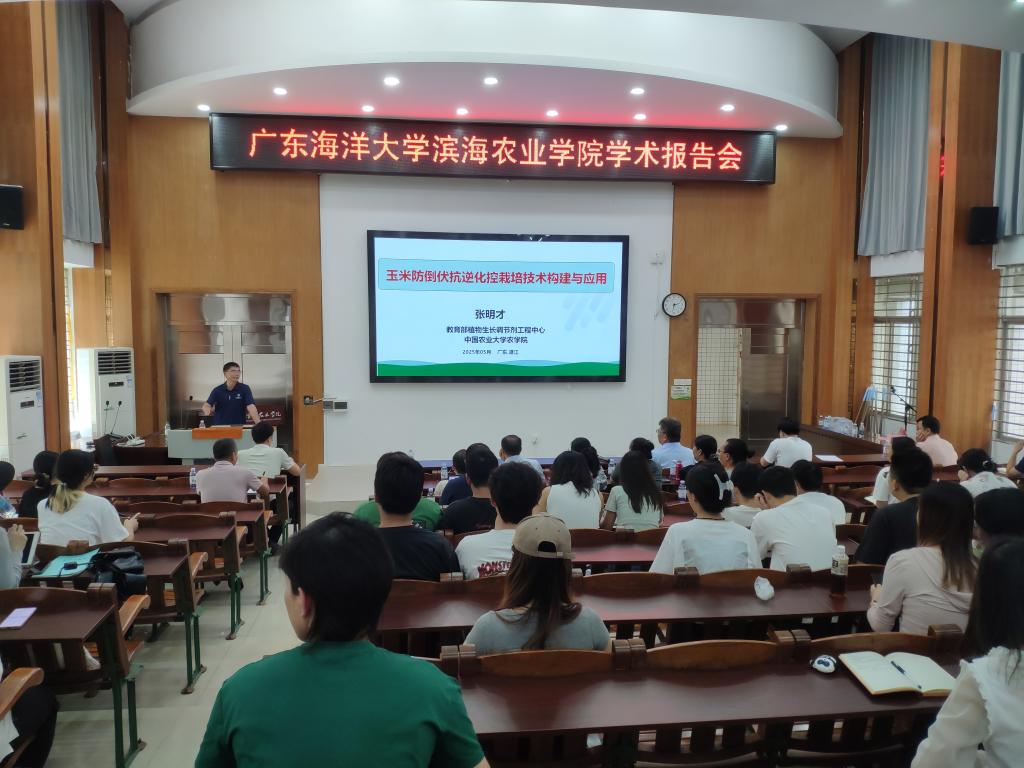 5月28日,应作物学学科邀请,中国农业大学教育部植物生长调节剂工程中心张明才教授在湖光校区兴农楼109室作《玉米防倒伏抗逆化控栽培技术构建与应用》的学术报告。报告会由滨海农业公司党委书记郑殿峰教授主持,公司教师、研究生及本科生代表100余人聆听了报告。