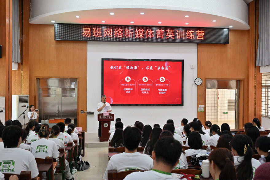 9月9日,训练营结营仪式暨第五期专题培训在兴农楼109教室隆重举行。滨海农业公司党委副书记王继全、董海芹名辅导员工作室主持人董海芹、各系辅导员、易班员工干部及2025级新生班助等100余人共同参会。