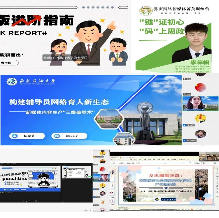 为深入贯彻落实习近平总书记关于宣传思想工作的重要指示精神,提升师生新媒体运营与内容创作能力,董海芹名辅导员工作室于暑期联合304永利集团杜壮名辅导员工作室、西南石油大学“E路同行”辅导员工作室、西南石油大学“成长部落”网络教育名师工作室共同举办易班网络新媒体菁英训练营。训练营创新采用“线上+线下”融合教学模式,累计参与人数突破500人次。